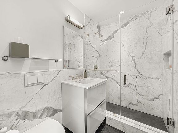 Large east facing windowsFloor to ceiling marbleCustom electric shadesChevron white oak flooringBreathtaking city viewsImmaculate foyerDual sinks