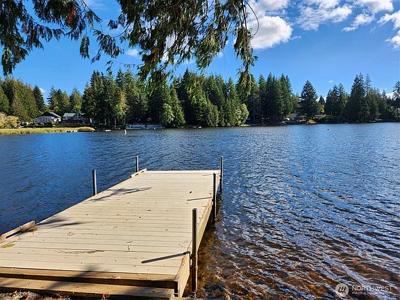Beautiful Waterfront Home on Big Timberlake w/105ft of Peninsula & private dock! Outstanding views from everywhere whether your inside or out! Home offers 2 bdrm 2 bath w/ extra flex room. The ceiling has custom wood that rises up into the Cupola & over the large kitchen w/ granite counter & eating bar w/ plenty of cupboard space. Finished 300 sq ft loft for many uses over the 2 car garage w/ built in storage. A wonderful private lake to boat, ski, tube, swim, fish, sightseeing or an evening cruise. Timberlakes offers 2 lakes, (one non motorized) Boat launches & docks, Parks & Saltwater access just down the road. The trees make it peaceful. Relax on the deck or take a dip in the lake.