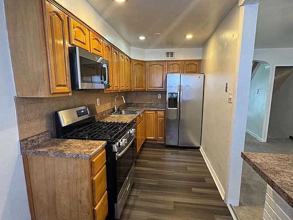 Welcome to this beautifully maintained rental home in Melrose Park. Upon entry, notice the plush carpeting that flows throughout the residence. The living room, accented with mirrored walls, transitions seamlessly into a formal dining area. The updated kitchen comes equipped with stainless steel appliances and classic wood cabinetry. Upstairs, three generously sized bedrooms, each featuring spacious closets. The finished basement adds additional space, including a laundry area, a convenient half bath. This home is complete with central air. Do not miss this opportunity. Contact us to schedule your private tour today.