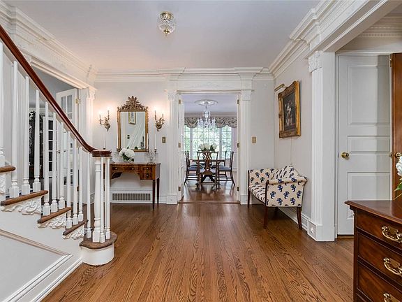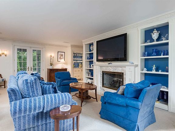 Wonderful opportunity to live on one of the finest and most beautiful residential streets of the North Shore. Sitting quietly back from the road, buffered by a crescent shaped island offering complete privacy, the 1.1 acre property has beautiful gardens, stone walls, tiered bluestone patios, inground gunite pool with jacuzzi and two waterfalls. This elegant brick colonial with slate roof has sunny southern exposure highlighting the stunning architectural details and exquisite interiors, featuring six fireplaces. Entertain in the formal living and dining rooms, kitchen/great room, relax in the antique wood paneled library and family media room, or retire to the home office, french sitting room, game room and exercise room. Beautiful master suite with fireplace, oversized formal dressing room, master spa bath with cathedral ceiling and access to outdoor balcony. Additional five bedrooms and four baths. This meticulous home has it all...prime location and privacy!
