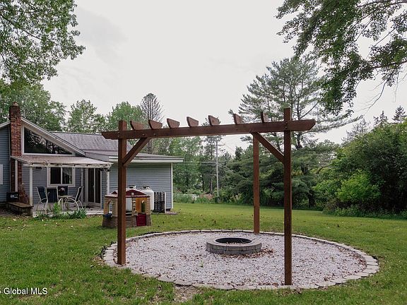 Welcome to this tastefully renovated Ranch style home in East Greenbush School district. On almost an acre lot! This home features ornate tile entryways. Modern eat-in Kitchen with high ceilings, exposed beams, black stainless appliances, kitchen island, granite counters & plenty of storage. Open to dining area & living room w/ hardwood floors & sun filled windows. Fully renovated quality tiled bathroom. Finished 3/4 loft space for storage. Updated heating system with additional Ductless units for Heat/AC. Enjoy the private yard from the covered back patio, firepit, raised garden beds & custom shed. Owner related to Listing Agent