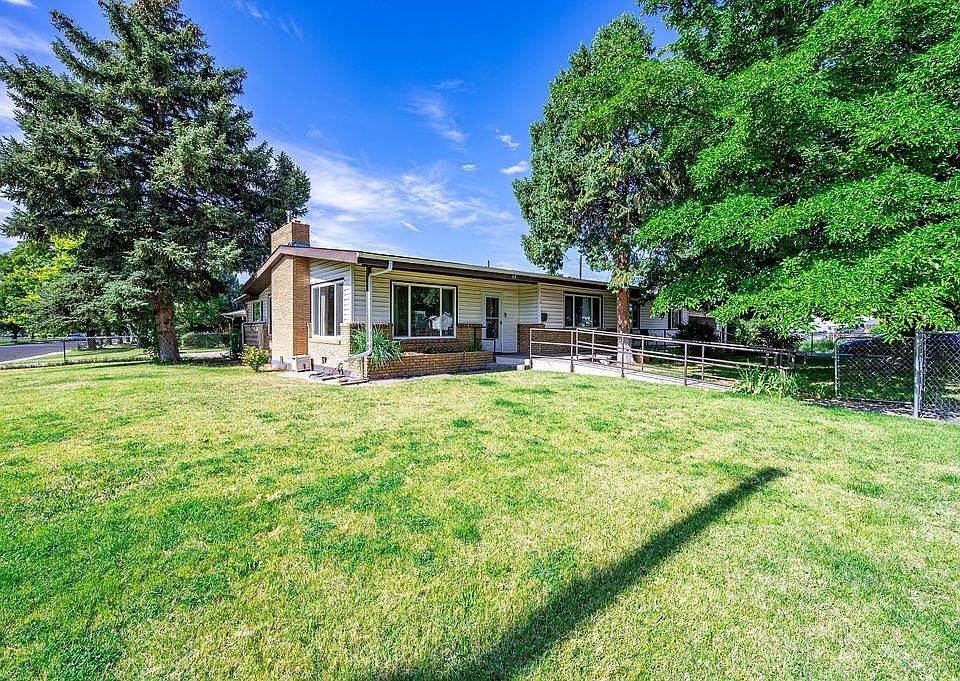 This is a must see inside home- not a drive by. You will be blown away w/this spacious 4-bedroom plus office home, which is great for large families or college students, or anyone wanting space & flexibility! Across from Sherwood Park, this ranch-style home offers 2,575 sq. ft. of thoughtfully designed living space with wheelchair accessibility into the home. The large living room has a gas fireplace & dining has a woodburning fireplace. The newly updated kitchen is complete w/gas range, three ovens, stained cement epoxy counters, and abundant cabinetry—perfect for everyday cooking or entertaining. A generous laundry room w/a mud sink adds convenience. 2 Bedrooms have an en-suite bathroom. Recent upgrades include a new roof (2025), updated solar panels, and a splitter A/C system. Outside, enjoy a small private backyard with space to relax or gather, all while being just across the street from Sherwood Park. Schedule your showing today!