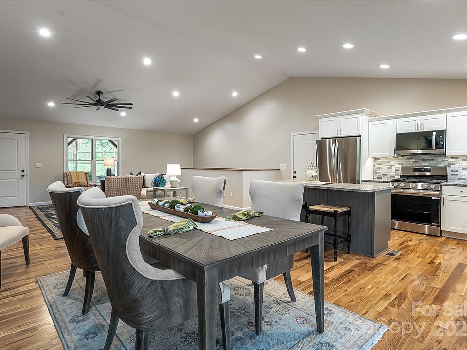 Finished lower levelLarge recreation roomCozy fireplaceVaulted ceilingsOak flooringOpen floor planAdditional kitchen
