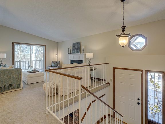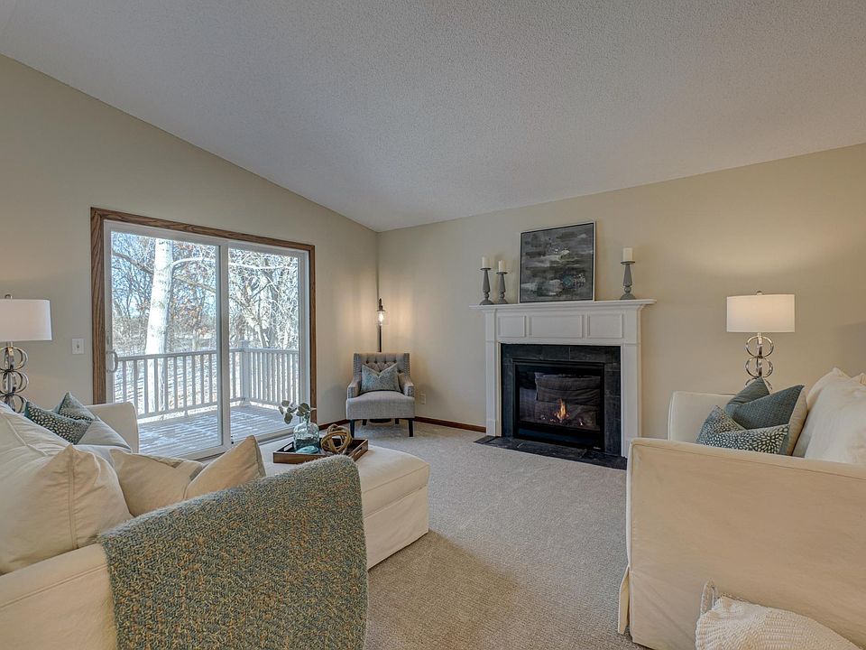 Welcome home to this end-unit townhome in a convenient Shoreview location in the Mounds View School District near restaurants, shopping, parks and the Vadnais Lake trails and regional park. This home features vaulted ceilings and two fireplaces. Kitchen includes an informal dining space. Two bedrooms on main level includes a primary suite that features a walk-in closet and walk-through bath. Two sliding doors to deck from kitchen and living room. Finished lower level walkout with family room, an additional bedroom and bath. Updates include new Renewal by Andersen windows & 3 new sliding glass doors in 2021, new W/D in 2024, new carpet, new paint, newer lighting, new refrigerator and more. Ready to move in and enjoy!