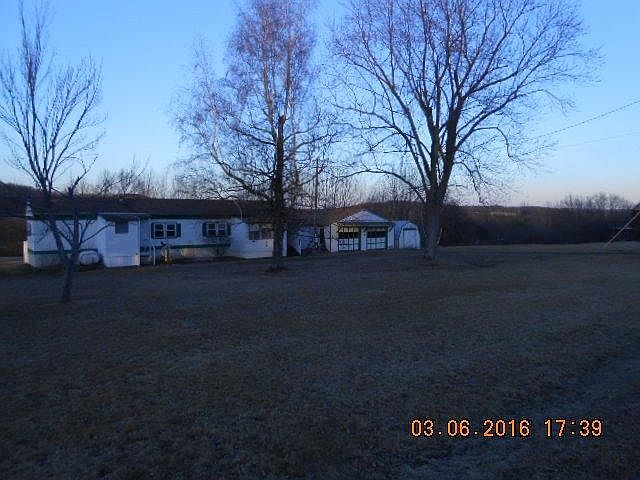 Nice Country Location! Well Maintained Older Mobile Home on almost 4 Acres with attached laundry room, enclosed sun porch, built up stick pitched roof and new vinyl windows throughout. Also there is a Very Nice 2 Car Garage and Storage Shed. Barn backs up to a wood line which opens to a field and a stream. Grounds were kept Immaculate!