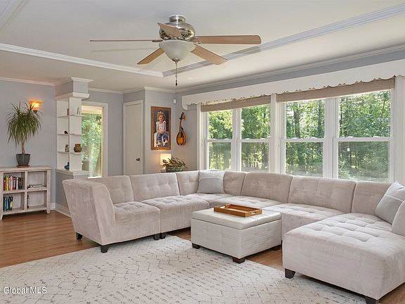 Spacious home in award-winning Burnt Hills-Ballston Lake Schools. Situated back from the road, this charming home is filled with built-ins and character. The bright living room overlooks a private yard with mature perennials, a wooded area, custom patio and small barn. Two bedrooms, including the primary bedroom, are located on the main level. Two additional bedrooms plus an office/playroom upstairs. Each level has a full bath. In-law potential with spacious family room and summer kitchen on ground level. Playset included plus less than 1/2 mile to Jenkins Park. Seller needs to lease back for a maximum of 60 days while awaiting completion of their new home.