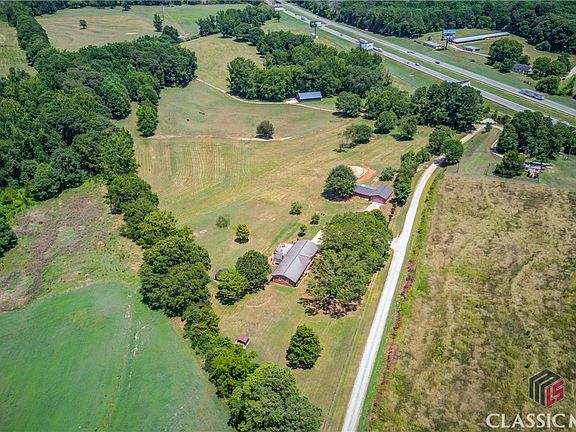 WOW! Situated on over 13 acres of gorgeous pastureland, this sweet ranch home is the perfect oasis! Boasting lovely hardwood flooring throughout, and an open concept living plan highlighted by a wood burning stove & hearth this home truely exudes country charm! The kitchen offers white cabinets, an island, plenty of storage and allows for easy entertaining. The Owner's suite offers a relaxing en suite bath with dual vanity. There are two more spacious bedrooms as well as another guest bathroom. A large laundry room offers additional storage options. The 2-car carport is currently being used as a "game-day" porch, but can easily be converted to a true garage to store your cars or other equipment. The back deck is where you will find yourself enjoying the serenity of your property with an outdoor grilling area, firepit and views for miles! There are a number of sheds and barns on the property making this the perfect place for your hobby farm or business. The barn includes a tack room, storage and stalls for your horses. There are a number of locations on the property where you can pull water from the well for any animals in the pastures. Shade can be found along the tree-line, along with plenty of open, level pastureland, making this property just ripe with possibilities