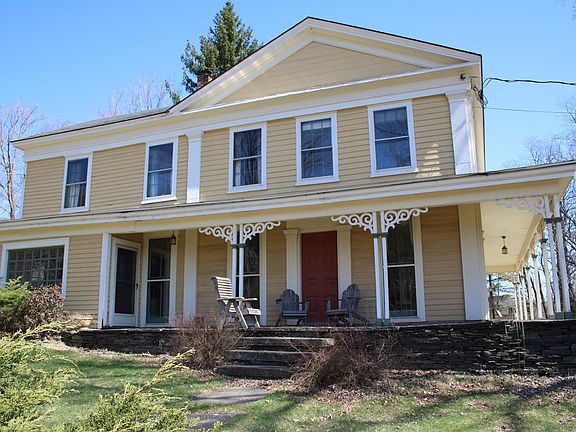 This five bedroom, three full bath classic farmhouse was originally erected in 1838 as the home of one of Franklin's founding families. Beautiful wood floors, trim and finishes, dual staircases, classic wrap around, covered, rocking chair porch. Delightful country kitchen modernized with an eye towards keeping a vintage feel. The field stone cellar is perfect for your private wine collection. Watch the deer every morning and evening on 35 acres of rolling meadows, garden and pastures, lined with sugar maples and blooming fruit and nut trees. Kayak, swim or fish in the Ouleout Creek which NY State stocks with trout every spring. Thinking of raising livestock or need spaces for workshop? Built in 1881, the hand-hewn wooden beams in the barn's hayloft are an architectural wonder, and could also be made into a stunning guest house. A large free-standing equipment shed is big enough for your tractor or car collection, or just family picnics. All this on a virtually traffic-free, private, dead end - but town maintained roadway. Within walking distance to the village. There's a heck of a lot more to tell but why not come and see it for yourself?