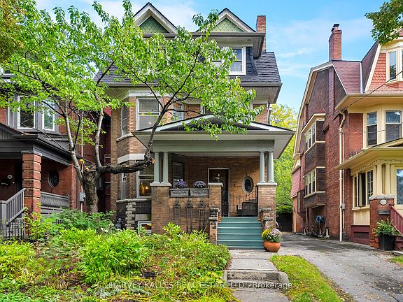 For locals, Indian Road is synonymous with dreamy, turn-of-the-century homes that sit like grand estates along a family-friendly tree-lined street, moments from the gates to the city's greatest playground (High Park) and the energetic Roncesvalles village. Residents in this pocket rarely move, with everything one could need to create a lifetime of memories at your doorstep. This detached 3-storey Edwardian masterpiece celebrates a glamorous era with original panelled millwork, wainscoting, and a handsome staircase. Main level features a wood-clad foyer with gas fireplace, pocket-doors that lead to the family room w/ fireplace and the first of several stained-glass bay-windows, a formal dining room that flows into a large updated kitchen, and a tucked away powder room/WC. The 2nd floor offers three well-proportioned bedrooms and a sunroom/solarium, ideal as an office or extra bedroom. A bathroom with deep soaking tub and walk-in shower services this level. The 3rd floor adds three more generous bedrooms and a 3-piece ensuite bath. Full basement with laundry and additional rough-in for bathroom. Outside, a 32X128 ft lot with a wide drive leads to a double detached garage and an ample backyard. Mechanical updates include new plumbing, new hot-water boiler, 200-amp electrical service, and a newer recycled-rubber shingle roof noted for longevity. Live comfortably "as is", update to taste, or elevate into a showpiece - this address supports it all!