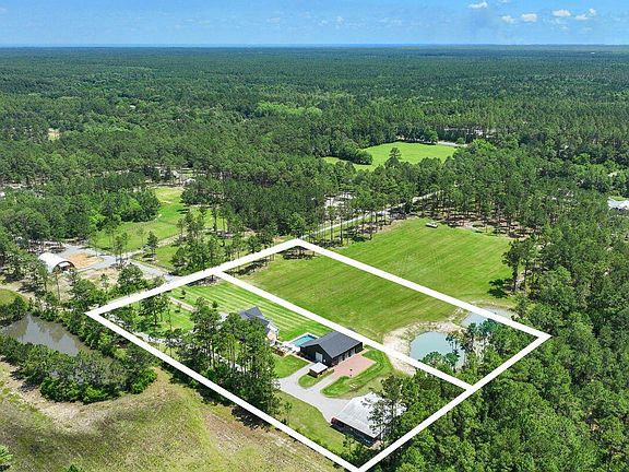 A Truly Rare and Unmatched Opportunity in Freeport, FL. For those dreaming of being close to the beach--yet far from the crowds--this extraordinary 5-acre estate offers the perfect blend of privacy, space, and future potential. Nestled just 5 miles east of Hwy 331 on scenic Hwy 20, this beautifully crafted homestead is a one-of-a-kind retreat in the heart of fast-growing Freeport. Subdivided into four platted 2.5-acre lots, this estate also features 2 additional lots for sale if you're looking to expand for your kids to have houses next door, build additional homes to sell on individual parcels, or simply enjoy the privacy and acreage all to yourself. With approximately 8 acres cleared, a picturesque pond, and a tree-lined entrance, this land is as usable as it.. is stunning. The 3,382 sq ft custom-built main residence is a showpiece, featuring 4 bedrooms, 4.5 bathrooms, wide-plank white oak floors, shiplap walls, Sierra Pacific windows/doors with white oak interiors, and two oversized porches overlooking serene pasture views. The open-concept kitchen, living, and dining areas include a breakfast nook and a spacious butler's pantrydesigned for everyday comfort and elegant entertaining. Step outside to find a 16'x32' resort-style pool with shellstone decking, raised garden beds, a fire pit, and ample room for play, relaxation, or gatherings. This is the kind of place where memories are made. A 2,581 sq ft fully climate-controlled 40'x60' detached garage/workshop offers serious bonus space with a 12'x24' guest suite and full bath, ninja-coated floors, retractable batting cage, workout zone, storage mezzanine, and Sonos sound systemideal for hobbies, hosting, or multi-generational living. Plus, a separate 36'x48' metal pole barn provides plenty of storage for equipment, boats, or recreational gear. Surrounded by upscale equestrian properties and family homesteads, this property supports a lifestyle of gardening, livestock, recreation, or just peace and quietall with no HOA and only minutes to Freeport amenities and the white-sand beaches of South Walton. Whether you're looking for a legacy property, a private family compound, or a unique investment with room to growthis is the one that rarely comes along.