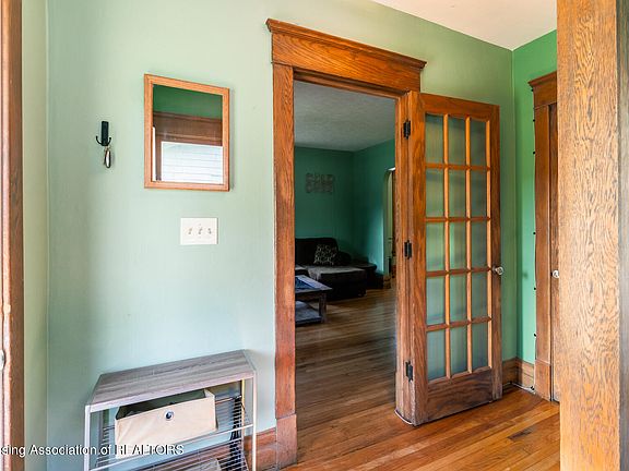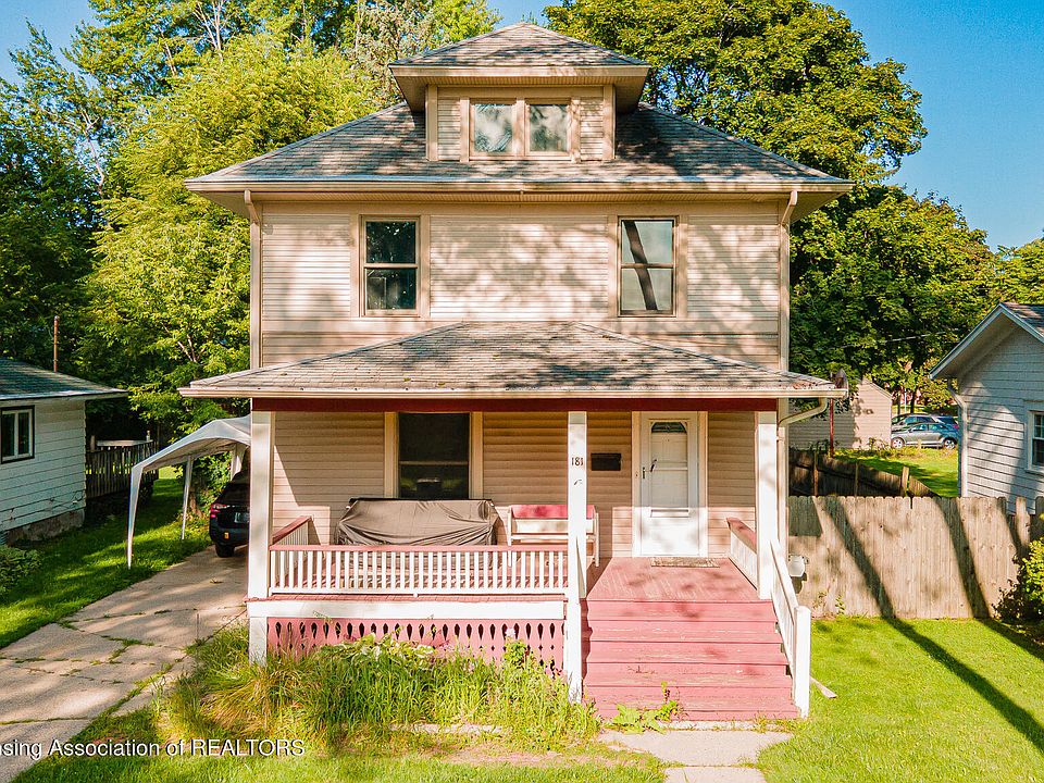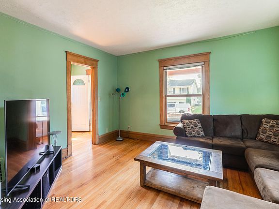 Discover a prime opportunity to own a beautifully maintained home just a block from MSU's campus! Step onto the inviting covered front porch and into a bright, welcoming space where hardwood floors extend through the expansive living and dining areas. The kitchen offers a cozy eat-in nook, generous cabinet storage, laminate countertops, and a chic tiled backsplash. A convenient half-bath is located on the main floor. Upstairs, all three bedrooms feature keypad locks for added convenience, and the full bath offers plenty of space. Enjoy the large deck, one-car garage, and recent updates including newer electrical, windows, insulation, fencing, and vinyl siding. Just steps from Downtown East Lansing's vibrant amenities!
