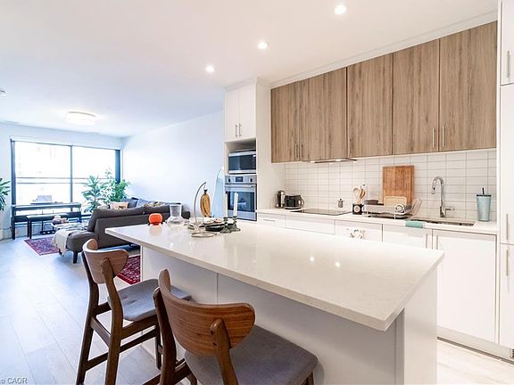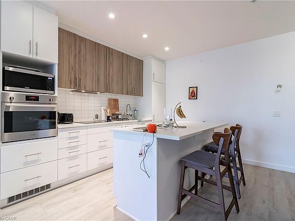 Welcome to Suite #1212 at CIRCA 1877 – a stunning 12th-floor residence in the heart of Uptown Waterloo. This 1 Bedroom suite offers a perfect blend of contemporary luxury, thoughtful design, and breathtaking views from one of the building’s most desirable elevations. Perched high above the city, this suite boasts spectacular views of Uptown Waterloo and beyond, filling the living space with natural light by day and showcasing a dramatic cityscape by night. Inside, elevated ceilings in the kitchen, living, and dining areas create an open and airy feel. The sleek kitchen features stainless steel appliances—including a built-in fridge—quartz countertops and backsplash, soft-close cabinetry, and a spacious island with extra storage. Enjoy in-suite laundry and one underground parking space for everyday convenience. Residents of CIRCA 1877 enjoy access to premium amenities, including a large Fitness Center, Co-Working Space, Lounge, Rooftop Pool with Cabanas, and a BBQ Area. Plus, indulge in exclusive dining at Lala Social House, located on the ground floor. Located in the sought-after Bauer District—steps from dining, shopping, groceries, the LRT, Waterloo Park, and both universities, with quick access to the Expressway—Suite 1212 delivers elevated living in every sense of the word.