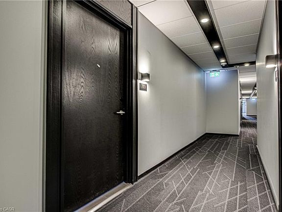 LUXURY UPTOWN WATERLOO ONE BEDROOM + DEN CONDO AVAILABLE IN THE EXCLUSIVE CIRCA 1877. The building amenities of this luxury condo include a ground-floor fine dining restaurant, 6th floor saltwater pool, cabanas, BBQs, fire tables, fitness & yoga studios, co-working space, and much more. This modern and bright unit boasts 10 ft ceilings, high-end finishes and a spacious floor plan. The sleek kitchen features beautiful quartz countertops and backsplash, low profile European style appliances, and an oversized island with plenty of storage and is ideal for food prep, entertaining, and eating meals. The light-filled and large open concept living/dining room offers floor-to-ceiling windows with a Juliet balcony, and space for your sofa AND dining table. Just off the living room you'll find the large bedroom with city views and custom built closets. The hidden gem of this unit is the den; ideal as an at-home office or more closet/storage. The must-have in-suite laundry and modern four-piece bath complete this beautiful and practical condo. One storage locker is included. Unit 710 is located in the Bauer District of Uptown Waterloo, near shopping, cafes, restaurants, and major employers like Google, Sun Life Financial, the Regional and City offices, and the Grand River Hospital. Circa 1877 is located just steps from a LRT station, making it quick and easy to travel through the city without a car. This is a unit you won't want to miss! Book your showing today!