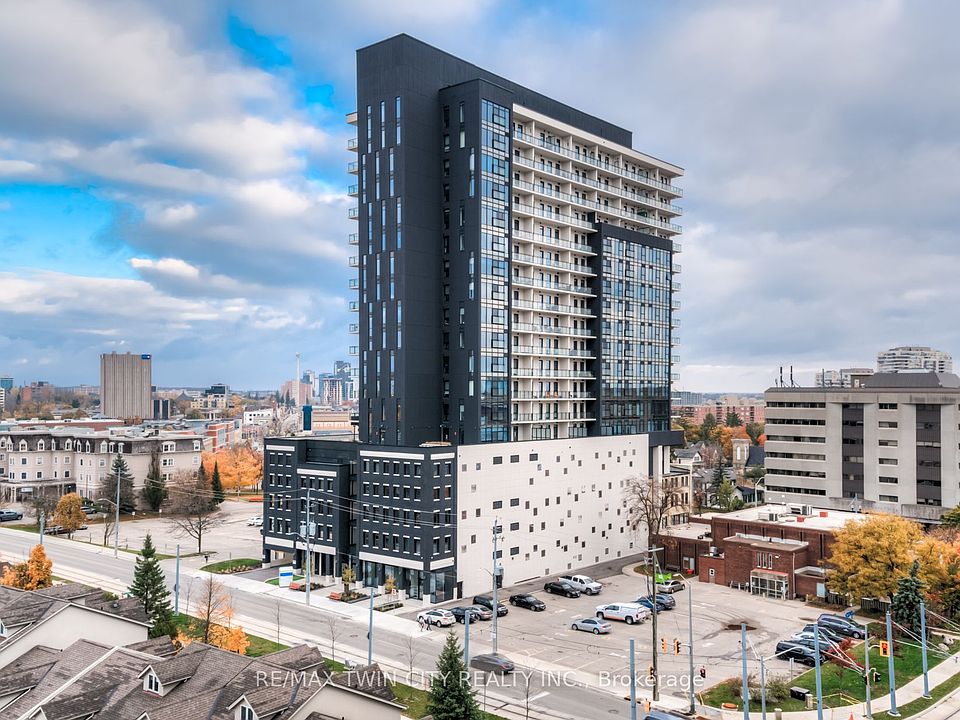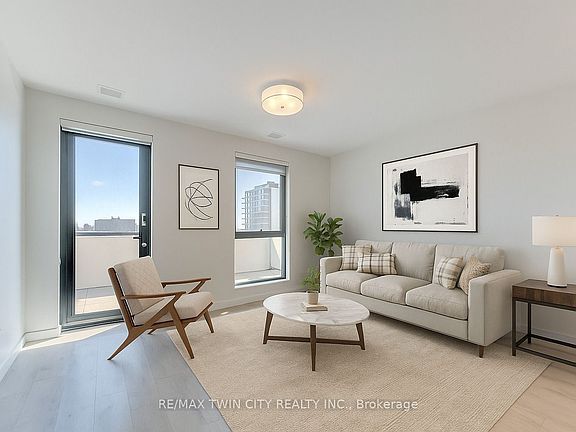 Welcome to CIRCA 1877, where the comforts of home blend seamlessly with upscale hotel-style amenities. This sun-filled 1-bedroom, 1-bathroom condo offers minimalist living at its finest. With clean white walls and elegant wood flooring throughout, the space feels open, airy, and modern. The sleek kitchen features hidden appliances that maintain a streamlined, clutter-free look, perfect for those who appreciate simplicity and style. Enjoy breathtaking views of Downtown Kitchener from the large bedroom windows and your generous 205 sq. ft. private balcony-ideal for morning coffee or evening relaxation. Convenience is key, with in-suite laundry and extra storage space for added functionality. But the real highlight lies in the building's amenities: unwind in the lounge, stay active in the fitness and yoga studio, take a dip in the pool, or host friends at the public BBQ area. There's even a shared co-working space for those who work remotely. Located at the crossroads of Uptown Waterloo and Downtown Kitchener, you're steps from the LRT and GRT stops, and just around the corner from local favorites like Vincenzo's and Bauer Kitchen. With Waterloo Park just up the street, you're perfectly positioned to enjoy the best the city has to offer. Luxury, lifestyle, and location-it's all here at CIRCA 1877.