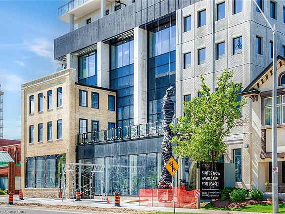 Located in the landmark Circa 1877, this oversized luxury corner suite offers 1,100 square feet of carpet-free living, plus a 280 sq ft wraparound balcony, complete with two bedrooms, a spacious den, and two full bathrooms. Check out our TOP 7 standout reasons why Suite 914 could be your next dream home! #7: UNBEATABLE LOCATION - Set in the heart of the vibrant Bauer District, you're steps from everything Uptown Waterloo has to offer — fine dining, boutique shopping, groceries, nightlife, Waterloo Park, both universities, and the LRT right at your doorstep.#6: LUXURY AMENITIES - Circa delivers top-tier amenities: a rooftop saltwater pool, private cabanas, a BBQ lounge, wet bar & indoor/outdoor social lounge. There's also a fully equipped fitness centre, outdoor yoga area, co-working spaces, and Lala Social House bar & restaurant on the ground floor. #5: ELEVATED LIVING - Floor-to-ceiling windows flood the unit with natural light. Wide-plank laminate floors, Lutron dimmable lighting, 9-foot ceilings, and roller shades add style and function. The sleek European-style kitchen features quartz countertops and subway tile backsplash, a concealed fridge and dishwasher, a stainless steel oven and cooktop, and a spacious island with built-in storage and breakfast seating. #4: WORK-FROM-HOME READY - The dedicated den is a perfect office or creative nook. In-suite laundry is also included for added convenience. #3: BALCONY WITH WRAP-AROUND VIEWS - Unwind on nearly 300 sq ft of private balcony space with sweeping views of the city. #2: BEDROOMS & BATHROOMS - Two spacious bedrooms offer comfort and privacy. The primary suite includes a built-in wardrobe and a modern 3-piece ensuite with a glass shower. The second bedroom has a wardrobe and easy access to the main 4-piece bath, complete with a shower/tub combo. #1: PARKING —The suite includes a secure, covered parking spot—a true luxury in Uptown. The City of Waterloo offers additional rental spots.