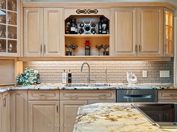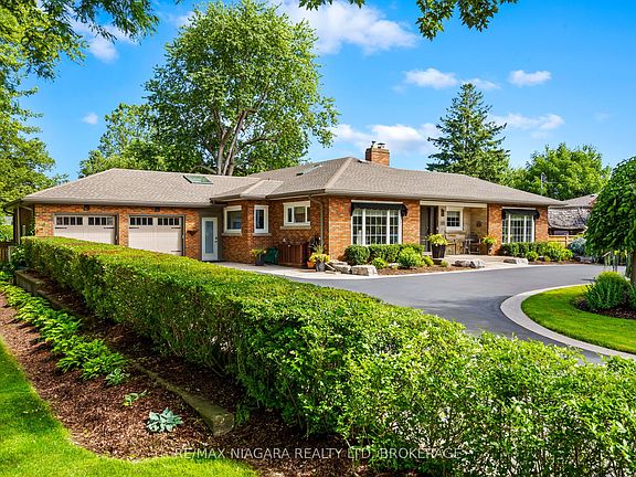Welcome to 181 Lakeshore Road, a TIMELESS & ELEGANT BUNGALOW in one of St. Catharines most sought-after areas. Boasting OVER 2,600 SQ FT ON THE MAIN FLOOR, this residence is designed for both grand entertaining and comfortable everyday living. The CIRCULAR DRIVEWAY FOR 14 VEHICLES, manicured gardens, and custom stonework set a striking first impression, while inside, TRIPLE-PANED oversized windows fill the principal rooms with natural light. The formal dining room is crowned by a SHOW-STOPPING CRYSTAL CHANDELIER, and the grand living and family rooms share a two-sided wood-burning fireplace. A CHEFS KITCHEN with a new PANTRY and generous eat-in space anchors the home, while the primary suite offers a double walk-thru custom closet and a SPA-INSPIRED ENSUITE. Two additional bedrooms, a MAIN FLOOR LAUNDRY, and an enclosed breezeway with SEPARATE ENTRANCE enhance the layout. The finished lower level includes a Rec Room, fourth bedroom, GYM, 3-piece bath, and games room, with IN-LAW SUITE POTENTIAL. Outdoors, enjoy the redesigned pond & waterfall, new backyard deck, landscape lighting, and upgraded sprinkler system. Practical updates include NEW HVAC, water treatment system, security system, and RUBBERIZED GARAGE FLOORING. All this just minutes from PORT DALHOUSIE and a short drive to NIAGARA-ON-THE-LAKE, offering a RARE OPPORTUNITY to own a LANDMARK PROPERTY with exceptional style.