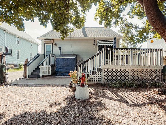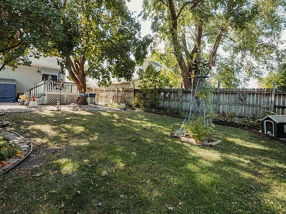 WELCOME-HOME!! Step inside this inviting 3-bedroom, 1.5 bath, 1 car detached garage with front porch home offering over 1,600 sqft of comfortable living space. The updated kitchen features a crisp white cabinetry, solid surface countertops, and plenty of workspace for meal prep and entertaining. Beautiful hardwood floors flow throughout the main living areas, adding warmth and character. Enjoy the outdoors from the spacious deck just of the formal dining area, perfect for morning coffee or evening gatherings overlooking the park-like backyard. The home also includes a second entrance leading directly to the basement-ideal for storage or hobbies.