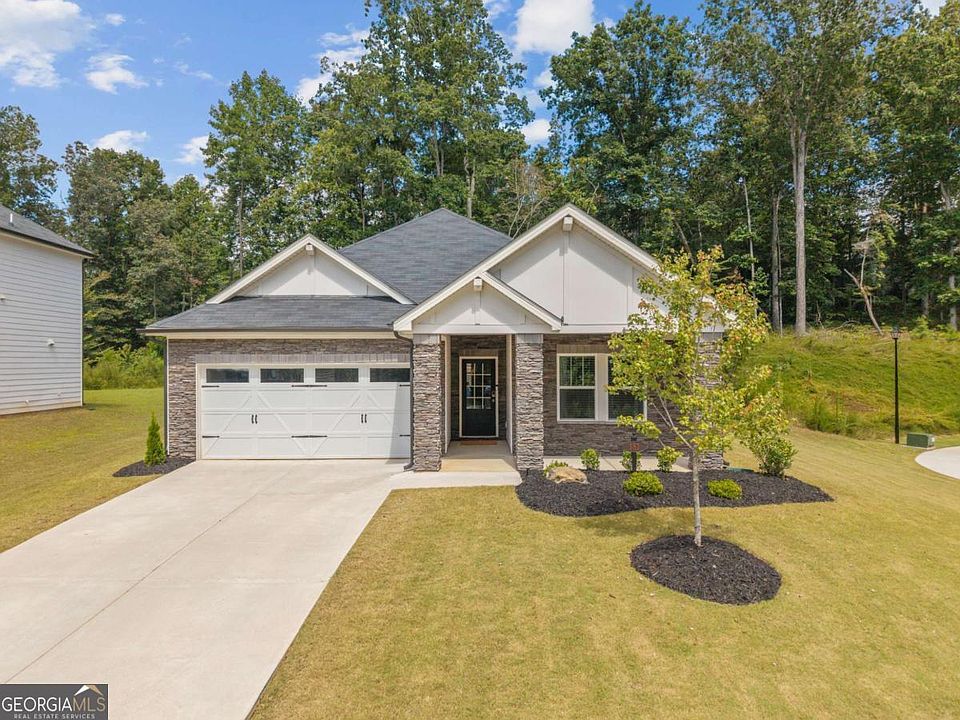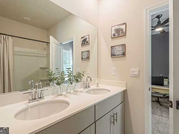 Welcome to this beautifully maintained single story ranch in The Woods at Dawson, where privacy and convenience come together. Tucked away at the end of a quiet cul-de-sac with no neighboring homes, this property offers one of the most private settings in the community. With no plans for construction on the surrounding lots, you'll enjoy having the cul-de-sac entirely to yourself. Inside, the bright open-concept layout is designed for modern living. The kitchen boasts quartz countertops, sleek cabinetry, and energy-efficient appliances, opening seamlessly to the living and dining areas, perfect for both everyday living and entertaining. The spacious primary suite features a walk-in shower, soaking tub and a custom-shelved closet, while three additional bedrooms provide flexibility for guests, family, or a home office. One secondary bedroom includes its own bath, while the other two share a convenient Jack-and-Jill bathroom.Notable upgrades include a tankless water heater and a privacy fence. The backyard is low-maintenance, ideal for those who prefer enjoying their home without heavy yardwork. Just minutes from shopping, dining, and GA 400, this home blends comfort, efficiency, and unmatched privacy into a rare find.
