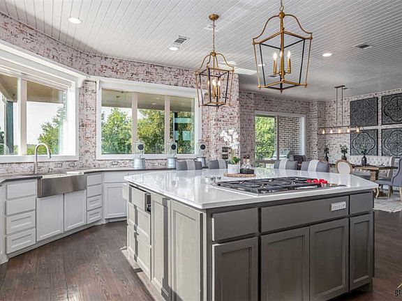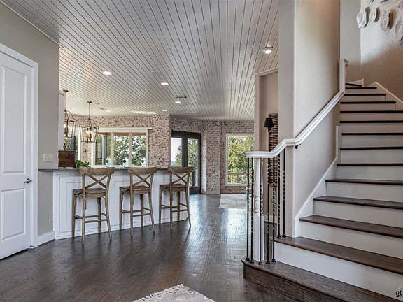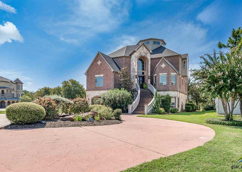 Stunning waterfront Country French home located in a private gated subdivision on Lake Texoma. This 5189sq ft beautifully designed home welcomes you with a gorgeous cast stone stairway leading to the newly remodeled interior that includes 4 stories w/ Crows nest on top floor w/incredible 360 views of the lake, 4 BR, 3 FB, 2 half baths, 2+ car garage w/ separate covered carport, elevator, media room, gourmet kitchen w/Wolf and Miele appliances, 2 outdoor cooking areas, 2 fireplaces and outdoor firepit. Two balconies overlooking the lake. Sec system, sprinkler system, surround sound. Property has 2 boat slips w/boat and jet ski lift - offered separately. Don't miss out on this one of a kind property!