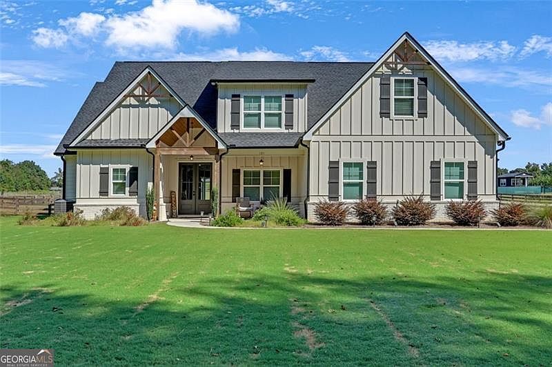 Price Improvement!!!! Stunning Modern Farmhouse on Over 1 Acre with Premium Upgrades!! Welcome to this beautiful, custom-built 4-bedroom, 3-bath home situated on over an acre of serene, fenced property. Designed for both elegance and comfort, this home offers spacious living with a modern open-concept layout, ideal for everyday life and entertaining. Step inside to discover floor-to-ceiling windows that flood the space with natural light, enhancing the home's airy and inviting atmosphere. The living room features a cozy fireplace, perfect for chilly evenings, and flows seamlessly into the oversized breakfast area and fully loaded modern kitchen - complete with high-end appliances, ample slow close cabinetry, and a large island perfect for gathering. The primary suite is located on the main floor, boasting a luxurious ensuite bathroom and ample closet space. An additional bedroom is located on the main floor for a mother-in-law suite or company. Another full bath is on the main. Upstairs, you'll find 2 additional bedrooms, a large full bath and a versatile bonus room, ideal for a home office, gym, or media room. The home utilizes radiant barriers on all roofing surfaces along with blown insulation in the attic to provide exceptional energy efficiency year round. Enjoy outdoor living year-round on the covered back porch, overlooking the beautifully maintained, irrigated lawn and expansive backyard. The property is fully fenced, offering privacy and room to roam - whether for children, pets, or entertaining. Additional features include: 2-car garage Spacious driveway Gorgeous architectural details Quiet, scenic surroundings Conveniently located near modern amenities and close to the square! This is more than a house - it's the lifestyle upgrade you've been waiting for.