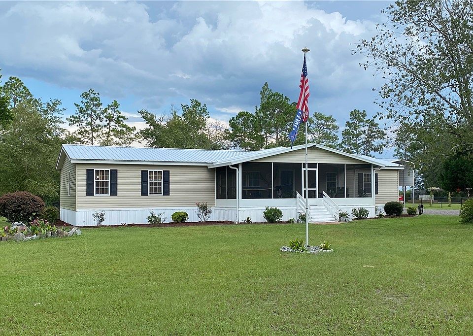 Beautiful manufactured mobile home on 1.56 acres in a quiet neighborhood in Brantley County, GA. has a three-bedroom, two-bath that has been very well maintained and is ready for its new family. All the bedrooms are large enough for king beds and each has walk-in closets. The master bath has a double vanity and garden tub with a separate tiled shower. The guest bathroom has a tiled shower only. Enjoy either the front or back screened-in porches with a good cup of coffee or a glass of sweet tea. The backyard has a chain-linked fence for your pets or children to keep them safe. There is a 10x12 storage building and a 24x35 metal garage/shop with 4 roll-up doors. Are you tired of paying storage fees on your camper? Bring it home and put it under a 12x44 metal camper shelter with its own power source. This is too nice to let it slip away. Call Today and make an appointment!