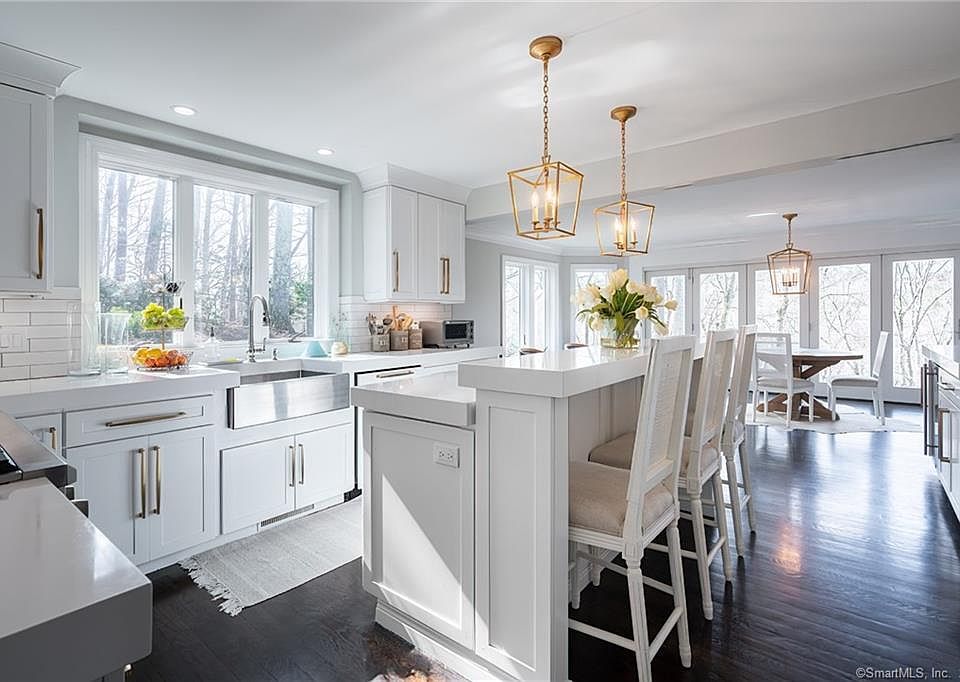 This stunning and newly renovated 4 bedroom and 4.5 bath home is situated on a sprawling 2.5 acres of land. Directly on the Farmington River, this home is surrounded by beautiful river views so you can enjoy watching the foliage change throughout the seasons. The peaceful and relaxing living space features a wall of windows showcasing the breathtaking natural views. The sleek eat-in kitchen is perfect for an at home chef with a six burner gas range, a wine fridge, and stainless steel sink. Additionally, the kitchen boasts a gliding bifold door that opens the wall completely with patio access as it overlooks the scenic riverfront. This home prioritizes style and convenience with a 1st fl laundry and mudroom that has lots of storage space and garage access. The luxurious primary bedroom amazes with bay windows and a walk-in closet; the sparkling en suite bathroom gives an at home spa experience with a rain shower and double vanity with quartz countertops. The additional bedrooms are spacious and comfortable, 2 with their own en suite bathroom. This home has plenty of space and flexibility with a sizable two part bonus room with private entrance: perfect for an at home gym or entertainment area. This home is truly meant for nature enthusiasts with its additional 3 room cabin right on the water. With private river access and a boat launch, get ready to make memories boating, fishing, and playing water sports. This riverside retreat is the perfect place to call home!
