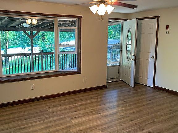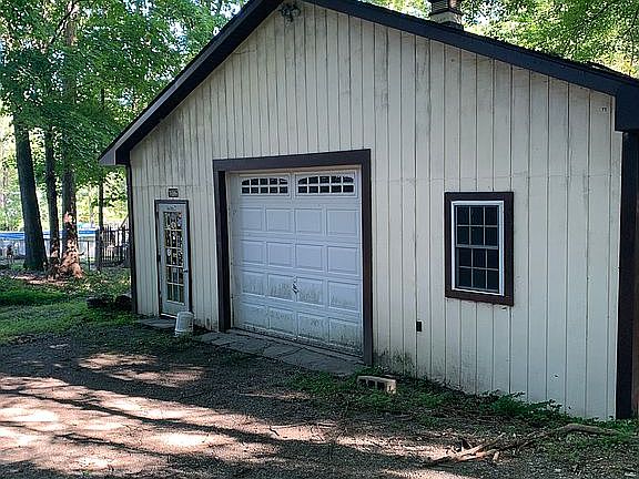 Inside Totally renovated 6 months ago. Nice 2 car detached garage. Very private on almost half acre.