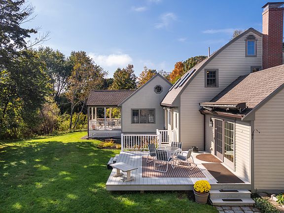 The interior exudes high quality amenities throughout. A thoughtfully designed floor plan for the first floor bedroom includes wider doorways, it's own covered deck, bath w/laundry, a large walk in closet & windows & doors that provide lots of light. There is a bright and cozy, post and beam sunroom leading out to a second deck, a large living room with a full wall of built-in book shelves , hardwood & tile floors, a spacious eat in kitchen, an island, a built in cubby with cabinetry, and drawers that could make an excellent drop zone and a 1st floor half bath. There is central air, the roof was replaced in 2013, the 24 x 24 addition was completed in 2013. Need a workshop? There is a 2 car garage for a smaller workshop or the dry, unfinished basement for a large workshop .