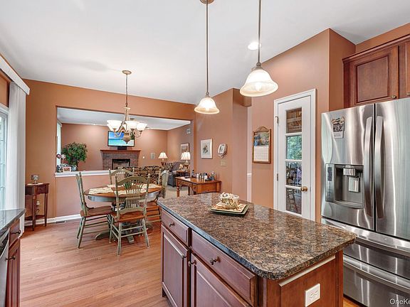 - Description: Family Room with Fireplace overlooking Kitchen and Eat-in Kitchen Area leading to back deck