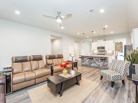 Welcome to 181 Temple Ln, located in the highly sought-after Waverly Place community! This beautiful 1-story home sits on over an acre and offers 4 bedrooms, 3 full baths, and 2,702 sq. ft. of open, bright living space. The kitchen features granite countertops, stainless steel built-in appliances, an island, breakfast bar, and plenty of storage—perfect for entertaining or everyday living. The spacious primary suite easily fits king-sized furniture with room for seating, and the luxurious primary bath is a must-see. Secondary bedrooms are generously sized, and the versatile media room is ideal for movie nights, a home office, or a playroom. Enjoy outdoor living under the screened-in covered patio, relax at the gazebo picnic area, or gather around the fireplace—all with no back neighbors and plenty of space to roam. Experience quiet country living with modern convenience, just minutes from I-45 and Lake Conroe. 181 Temple Ln is where comfort, style, and serenity meet.