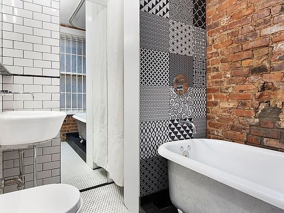 Ge dishwasherExposed brickGreat lightFrigidaire refrigeratorNewly renovated kitchenHigh ceilingsLuxurious claw foot tub