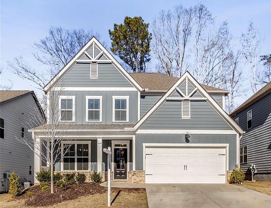 Welcome home to this newer construction Craftsman/Farmhouse in the sought after Springs Meadow neighborhood! Built in 2022 this property is turn-key ready and maintenance free. There are upgrades throughout the open concept floor plan that you will love. You are welcomed into the home with a large open hallway, and a separate dining room with beautiful coffered ceilings. The Chef's kitchen is an entertainers dream. Featuring quartz counters, a high-end appliance package, oversized island, sleek subway tile, and a stunning butlers pantry! The walk-in pantry is enormous! This open floor plan also includes a separate breakfast area and living room with a brick fireplace. To complete the main level there is a bedroom and full bathroom perfect for guests, and also a convenient mudroom. Upstairs features a large loft area that can be used in so many ways, perhaps a second living room or a play area for the family! The primary bedroom is very large and features an ensuite bathroom with double vanity, quartz counters, and a separate tub and walk in shower! The walk-in closet is to die for! The upper level is complete with two additional large bedrooms and a full bathroom. The outdoor area is wonderful with a covered patio and over 25 feet of outdoor entertaining space. Spring Meadows includes an incredible swimming pool and playground for the children, shopping, grocery stores, and parks are all nearby! 181 Treeline is yours for the taking!
