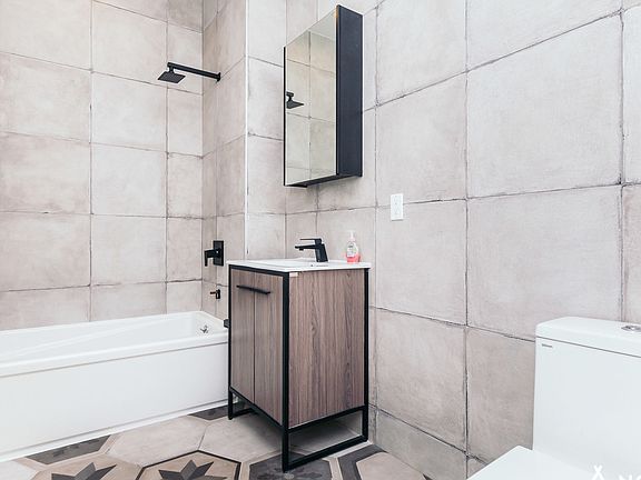 Payment options available Brand new construction! Beautiful 1 bedroom duplex with 1.5 baths. Modern kitchen with stainless steel appliances which include a dishwasher and a microwave. Hardwood floors, Central A/C. Close by to the Myrtle Av (JMZ) trains. Building has a, laundry room, rooftop and backyard! AMENITIES Central A/C Hardwood Floors Stainless Steel Appliances Dishwasher Built in microwave Stone countertops Laundry in building Outdoor Space Roof access Basement Duplex High Ceilings Video Intercom
