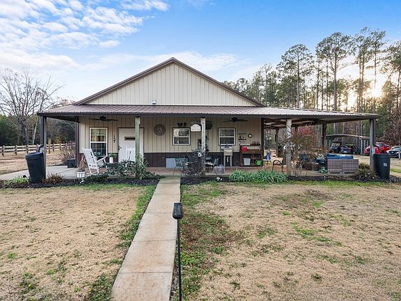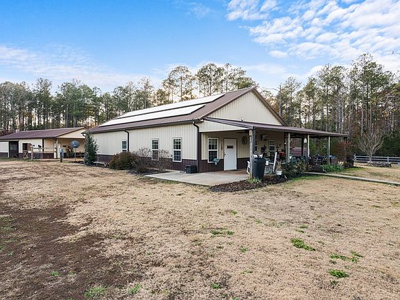 This stunning eight-acre horse farm, located on the Long Cane Horse Trail in Sumter National Forest near Parson's Mountain Recreation Area, offers a unique and convenient living experience. The property is completely bordered by National Forest and Forest Service Road/Trail, These gorgeous trails are cleared and they provide close to 30 miles of riding trails providing a remote yet accessible setting. The home, built in 2016, features two bedrooms, two baths, an office, and a versatile third bedroom/study/tack or work room. The spacious covered wrap-around porch offers shade and fresh air, facing mostly north for optimal comfort. The kitchen, dining, and living areas flow seamlessly, complemented by a large laundry room and mud room with excellent deep well amenities. Noteworthy features include solar panels that net-meter to Duke Power, resulting in an annual payment of approximately $1000 to the homeowner. With a propane bill of around $1000 per year, the property boasts zero power costs. An automatic Generac propane generator ensures uninterrupted power supply, while additional propane appliances such as a hot water heater, dryer, and stove/oven enhance efficiency. The home is equipped with a 3-ton HVAC system for central air and heat, along with nine-foot ceilings, stained concrete floors, and double insulated walls for comfort and energy savings. The property is designed for equestrian enthusiasts, featuring a four-stall horse barn with interior and exterior entries, double "Dutch" exterior doors, and a tack/feed room with laundry facilities. An outside wash rack, cargo container for hay storage, and covered trailer parking area with 30 amp hookup cater to practical needs. Three fenced pastures with shelter and water, along with two separate carports, offer ample space for horses and vehicles. Conveniently located just fifteen minutes from Uptown Greenwood, SC, and twenty minutes from Abbeville, SC, this property at 181 Tuck Rd. Bradley, SC 29819 presents a comfortable and low-maintenance lifestyle in a picturesque setting.