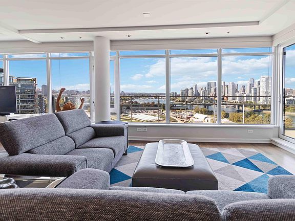 Imagine coming home to a 1,900 sq ft open-plan penthouse w/ unobstructed views of False Creek, downtown & mtns from every room! Rare 1 level 3 bdrm + den, 2.5-bath condo w/ entertainment-sized living & dining areas, gourmet kitchen w/ Sub-Zero fridge, walk-in pantry + Murphy bed for guests + a private rooftop oasis w/ an open-air 12'x1 O' pergola, lush gardens & tranquil lounge areas. Radiant heating & cooling, 2 pkg stalls & oversized storage lkr well located in Olympic Village @The Brook, a LEED Gold certified bldg w/ concierge, gym + access to the Gold Medal Club w/ add'I fitness facilities + pool. Enjoy the best of Vancouver steps from the seawall, parks, Canada Line, AquaBus, Science World, dining, breweries & shops in the vibrant ever expanding OV community.