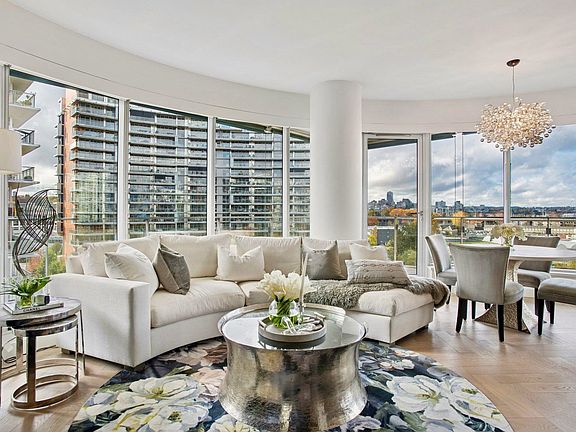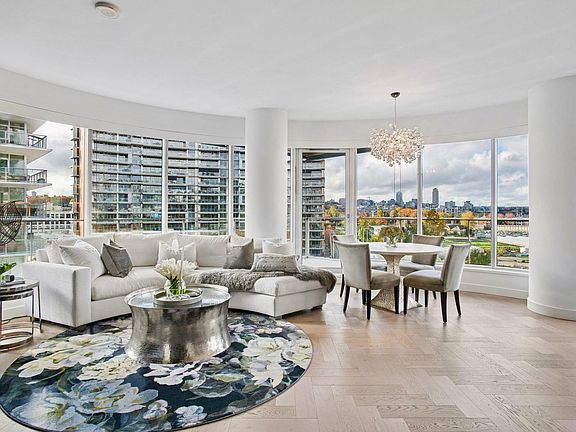 This stunning corner home in Olympic Village combines high design with everyday comfort. Curved floor-to-ceiling windows frame sweeping views of False Creek, the city skyline & park space, while herringbone floors, feature-wall millwork & custom wallpaper bring refined character throughout. The open layout flows from the chef’s kitchen—Eggersman cabinetry, quartz counters, Miele/Sub-Zero appliances—to a bright living area opening to a spectacular 380+ sq ft terrace for entertaining. A large den offers flexible use, and bedrooms are perfectly separated for privacy. Enjoy Gold Medal Club access (gym, pool, sauna, hot tub), fitness centre, lounge & concierge. Includes 2 parking with EV, 2 lockers. Steps to the Seawall, cafés & shops—this is Olympic Village living at its best.