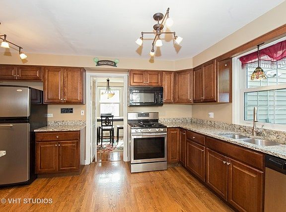 Spacious and bright, this updated, well maintained home is perfect for living and entertaining! From the foyer, you enter the living room that gets plenty of natural sunlight through the bay window. The fireplace and built-in bookcases add a touch of character to the room. Enjoy meals in the separate dining room. Cooking is a pleasure in the sun-filled gourmet kitchen which offers plenty of cabinet storage, granite counter tops and stainless steel appliances. Relax or entertain in the first floor family room. All three bedrooms are on the second floor and are generous in size with spacious closets. The large, full bath has granite counter tops and and spa-like tub and shower. The full basement is spotless clean. The huge, fenced backyard has a paver brick patio, storage shed and enough space for a garden and more. Conveniently located walking distance to the train, town, Prairie Path, parks & school.