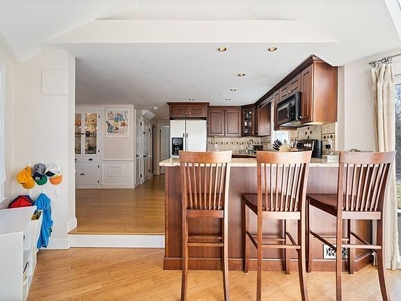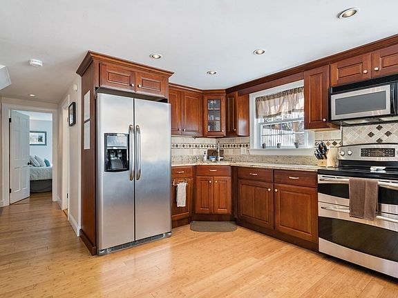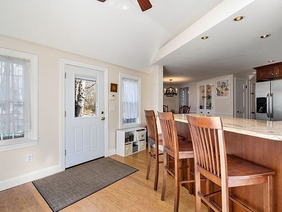 Adorable updated Cape on convenient and historical Webster Street. Enter the home to find a vaulted ceiling mud room with skylights and garage access. Continue to an updated kitchen with granite countertops, stainless steel appliances and a breakfast bar. Make your way to a dining room boasting wainscoting and a built in china cabinet. Next is a sunny living room with a wood burning fireplace. Complete the first floor with a convenient main bedroom and updated bathroom with tub. Upstairs are two nicely sized bedrooms as well as another gleaming updated bathroom. In the partially finished basement is a family room, laundry room and quiet home office. Through the mud room slider is a spacious fenced in backyard, with patio, outdoor shower. storage shed and fire pit. Harwood floors throughout and more updates including central air (2020), roof (2022), windows (2016), shingles (2018), generator hookup and electric panel (2022). This home is a gem!