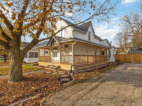 Where historic charm meets modern comfort. Located near the heart of the Old Courthouse District, this fully renovated gem places you just minutes from downtown, schools, parks, grocery stores, and countless local amenities. From the outside, you'll love the inviting wraparound covered porch, newer steel roof, and private driveway leading directly to the backyard. A brand new fence provides added privacy, perfect for relaxing, entertaining, or letting pets roam freely. Step inside to a thoughtfully designed main floor featuring an open-concept chef's kitchen and living area, plus a separate dining space and convenient half bath. The kitchen is a true standout, boasting Quartz countertops, soft-close cabinetry, and stunning gold accents that tie the space together beautifully. Tucked at the back of the main level is your spacious primary suite, complete with a walk-in closet and a stylish 4-piece bathroom. Upstairs, the original staircase adds warmth and character as it leads you to two oversized bedrooms, each with large closets, a second 4-piece bathroom, and convenient second-floor laundry. This home was stripped to the studs and rebuilt from the ground up, giving you peace of mind with all-new plumbing, electrical, HVAC (furnace & A/C), windows, appliances, and more. Move-in ready and packed with upgrades, 181 Wellington is the perfect blend of timeless character and modern convenience. Don't miss your opportunity to own this beautiful, turnkey home in one of St. Thomas's most walkable and welcoming neighbourhoods.