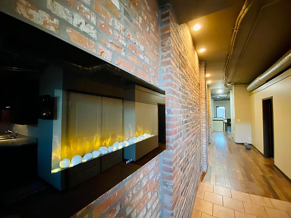 New electric fireplaceExposed brickHardwood flooringUpdated appliances