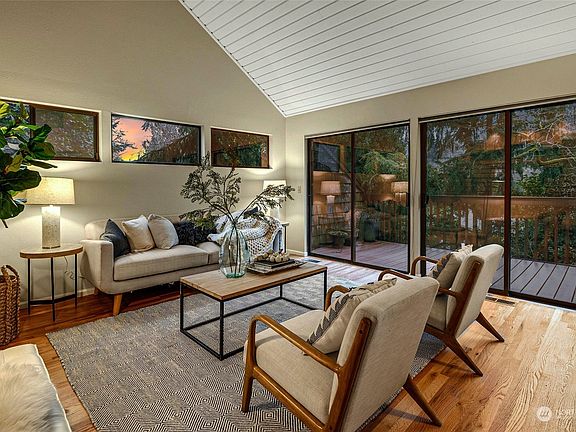 1980's urban treehouse in the heart of much sought after Montlake neighborhood. Wonderful sylvan setting, large picture windows and elegant hardwood floors. Open floor plan on the main level with updated kitchen, dining room and large living room with vaulted ceilings and tranquil outlook. Large entertainment sized deck off living room provides for wonderful indoor/outdoor living space. Second level includes primary suite with updated bath and walk in closet, Upper level offer large 4th bedroom or home office with tons of natural light and treehouse feel. Fully finished lower level complete with 2 bedrooms, full bath, & large family room with fireplace and access to landscaped backyard. Potential for ADU with separate entrance.