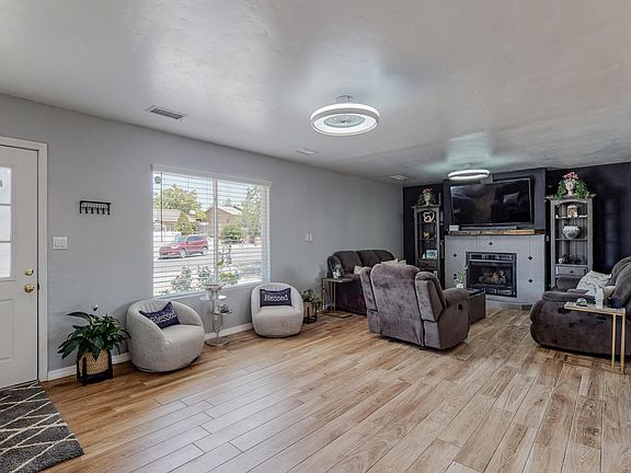 Welcome to Alpha Court in Rio Rancho! This beautiful and well loved single story home offers a nice, open floor plan, beautiful laminate & tile flooring, fireplace for those chilly nights along with so many recent updates! Pro-panel Roof (2020), Granite Counter tops in the kitchen (2021), Refrigerated Air (2021), Tankless Water Heater (2021) & SO MUCH MORE! Covered patio offers space for gatherings, tongue & groove ceilings & access to open backyard. Both bathrooms have been updated & the bedrooms are really nice sized. Located in a cul-de-sac, this large lot offers plenty of space, a beautiful pond, fire pit, storage and a deck! Imagine the possibilities. You'll love the convenience of its location and enjoy have it low utility bills with the solar. Hurry, this is a good one!
