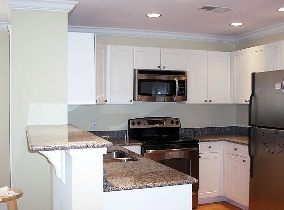 - Kitchen Cabinets/Counters: Granite, White Cabinets