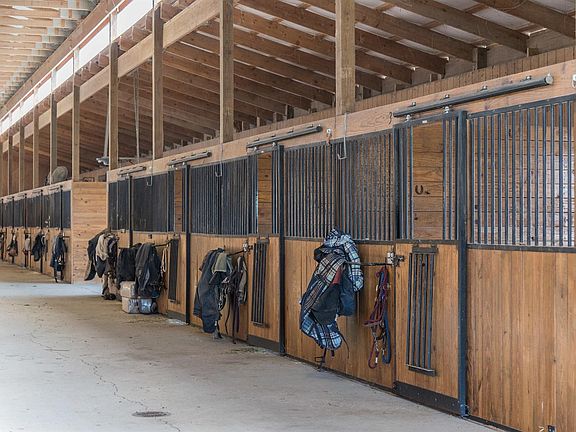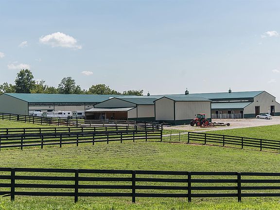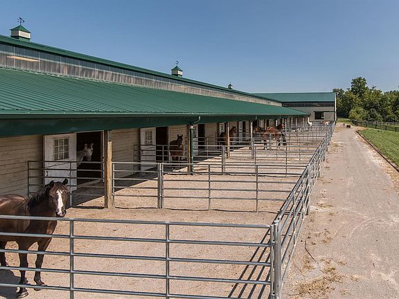 Wild Rose Equestrian Center features a spectacular barn complex with attached indoor arena, outdoor arena, cross country course and newly built ranch house, located on the edge of Lexington. Top of the line 24 stall barn sports outdoor runs off each stall, waterers in each stall, 80' x 216' indoor arena with synthetic footing, viewing lounge, 1.5 baths, multiple wash stalls, multiple tack rooms, main office, individual security access system to each room. Barn complex includes a free span building for equipment storage and shavings, large trailer parking lot, 150' x 200' outdoor arena, 3 stall isolation barn and tobacco barn converted to run in sheds and additional stalls. 10 paddocks and 9 pastures with automatic waterers. 4 year old ranch house on a full walk-up basement features 2 separate living quarters, hardwood floors, granite countertops w/gorgeous views of your farm and outdoor ring. Current dressage trainer and/or boarders could remain and be a revenue stream to the new owner