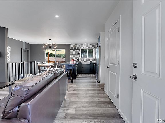 Gorgeous remodeled ranch home with full finished basement on a cul-de-sac! Quiet street, Great room with custom granite counters, farmhouse sink, open dining area, stainless steel appliances with side be side refrigerator, glass cooktop, custom cabinets, engineered hardwood floors, new windows, recessed can lighting throughout, updated plumbing fixtures, fireplace in living room area, sliding door goes out to an expansive yard with wood deck and privacy fencing. 3 roomy bedrooms up, 2 beautiful bathrooms with custom tile and glass shower doors. Basement is fully finished with a huge family room, full updated bathroom, large bedroom, and laundry room. Lots of storage throughout. Comes with 2 sheds and close to shopping, public transportation, and just a short distance to Lambertson Lakes Open Space and Tuck Ditch Park. New furnace, AC, hot water heater installed in 2020. Roof will be replaced before closing, older hot water solar panels will be removed and not replaced. This is a truly beautiful home not to be missed!
