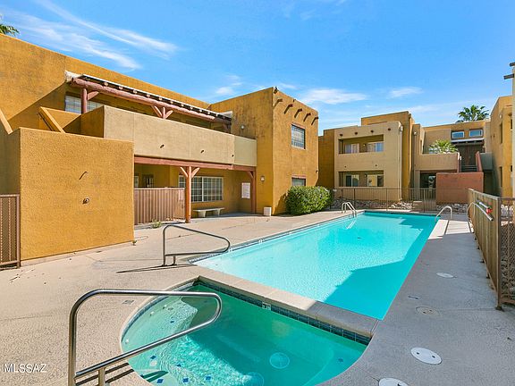 Charming ground floor 1bd/1ba condo with tile floors throughout. Open living area, Kitchen with stainless steel appliances and thoughtful use of space. 2 sliders to private patio with storage closet. Easy access - unit is in bldg 100 just off Blacklidge and near the pool. Great community with two pools, spa, tennis, clubhouse and laundry on site. Amazing location in the heart of Tucson close to bus lines, shopping, medical and only 2.5 miles from the U of A. With acceptable offer, seller will pre-pay estimated special assessments through 2027! - contact agent for details.