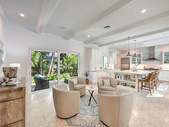 Stunning beachside retreat completely remodeled in 2024. This exquisite home offers modern luxury & coastal charm. Selling fully furnished the home boasts a new tile roof, impact glass & an all-new island kitchen w/Quartzite counters, custom cabinetry & top-tier appliances. Enjoy Spacious living & family rooms, fireplace, stone & engineered wood floors. 3 new full baths plus a powder rm. Outdoor living is redefined with a beautifully renovated saltwater pool, a new covered lanai, lush landscaping & irrigation. Located in a gated community w/private beach access. Sizes approx./subj. to error.