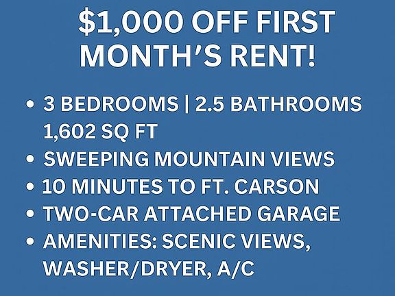 Admire sweeping Front Range views and modern finishes in this beautiful 3-bedroom, 2.5-bath condo located in southeast Colorado Springs. With over 1,600 square feet, this home offers an open layout filled with natural light, sleek laminate flooring, and upgraded fixtures throughout. The spacious kitchen features stainless steel appliances, ample countertop space, and a modern layout perfect for everyday living or entertaining.