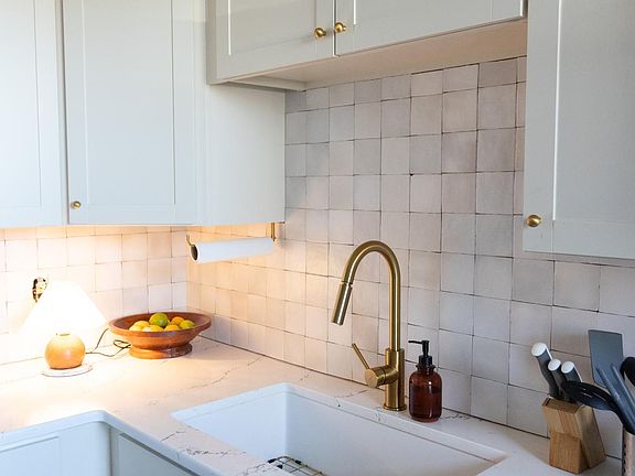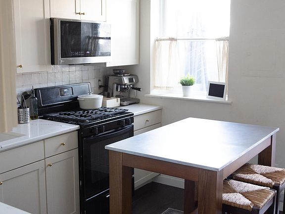 Inside, you'll find brand-new luxury vinyl plank flooring, fully updated bathrooms, and a designer kitchen featuring refinished cabinetry, quartz countertops, handcrafted zellige tile backsplash, and new stainless steel appliances. A stylish West Elm island completes the space, perfect for entertaining or casual dining.