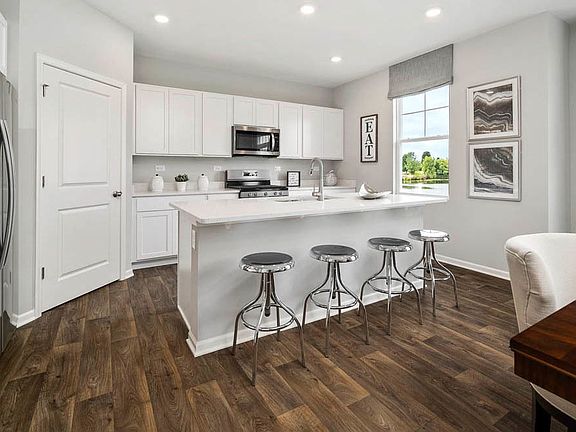 Discover yourself at 1810 Legacy Pointe Boulevard in Plainfield, Illinois, a beautiful new home in our Ashford Place community. This home will be ready for a spring move-in! This homesite includes a beautiful brick front facing on the garage, full front porch and fully sodded yard. This Holcombe plan offers 2,356 square feet of living space with a flex room, 4 bedrooms, 2.5 baths, 9-foot ceilings on first floor, and full basement. Entertaining will be easy in this open-concept kitchen and family room layout with a large island with an overhang for stools and modern shaker cabinetry. Additionally, the kitchen features a walk-in pantry, modern stainless-steel appliances, quartz countertops, and easy-to-maintain luxury vinyl plank flooring. Enjoy your private getaway with your large primary bedroom and en suite bathroom with a raised height dual sink, quartz top vanity, and walk-in shower with chic wall surrounds and glass shower doors. Convenient walk-in laundry room, 3 additional bedrooms with a full second bath and a linen closet complete the second floor. All Chicago homes include our America's Smart Home Technology, featuring a smart video doorbell, smart Honeywell thermostat, smart door lock, Deako smart light switches and more. Exterior photo of actual home. Interior photos are of similar home and model home. Actual home built may vary.
